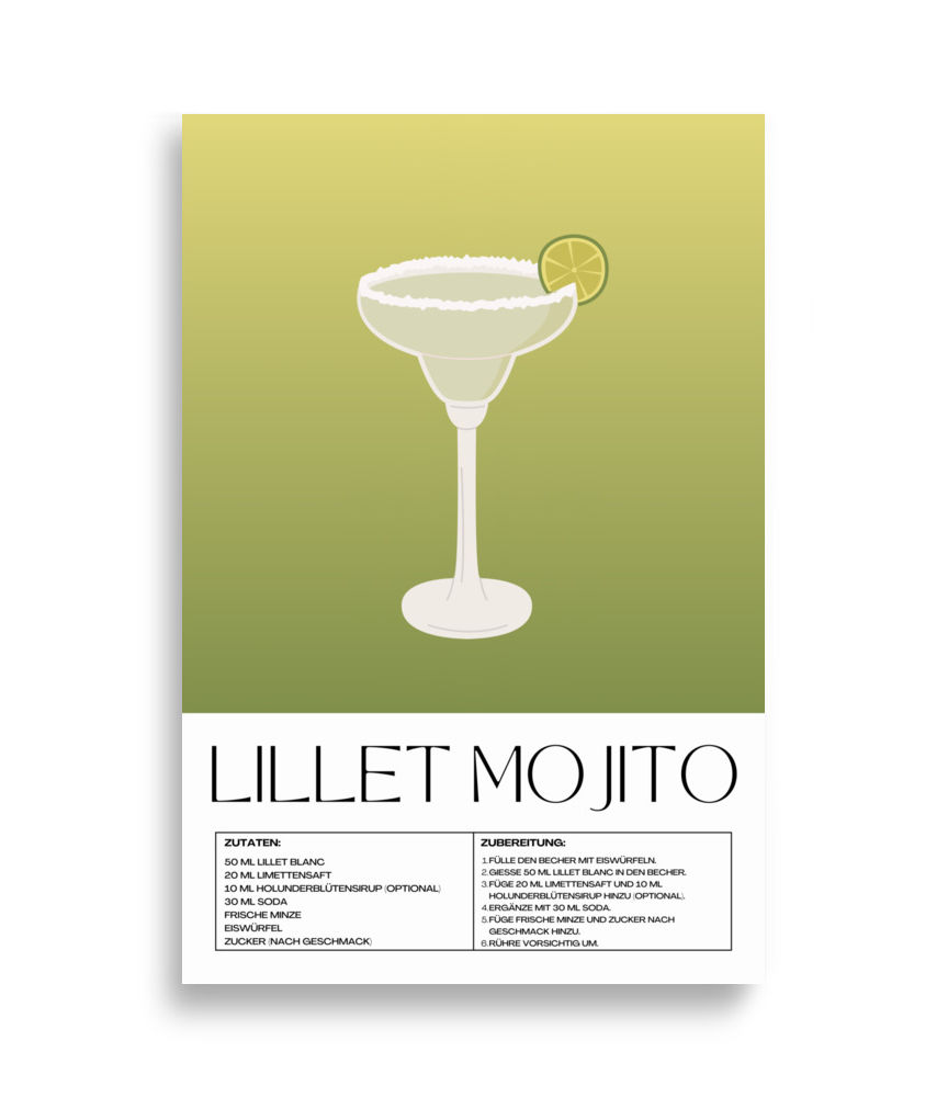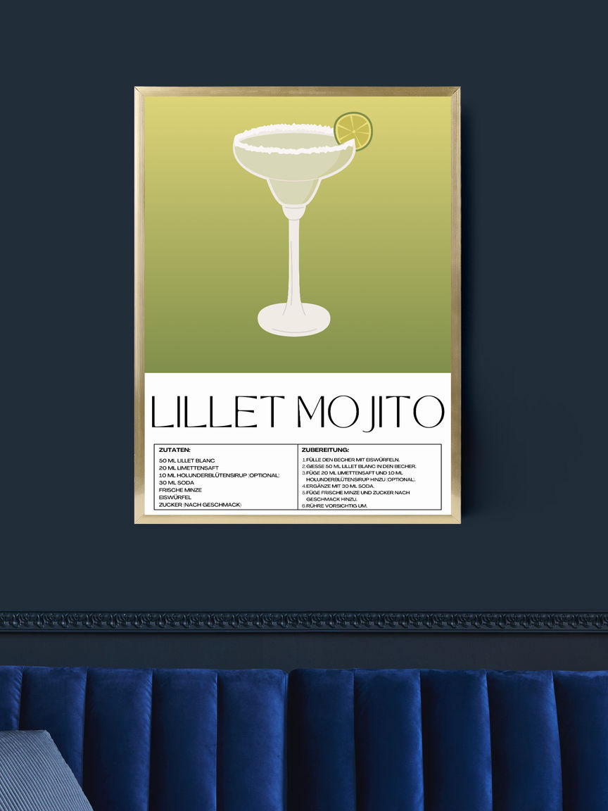 Der Lillet Mojito kommt in diesem eleganten Poster perfekt zur Geltung. Die Museumsqualität des Posters garantiert eine lange Haltbarkeit und intensive Farben, die Ihr Zuhause verschönern.