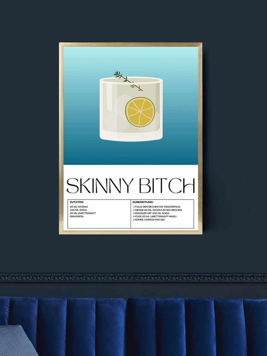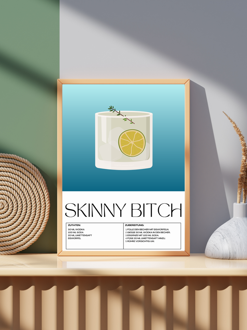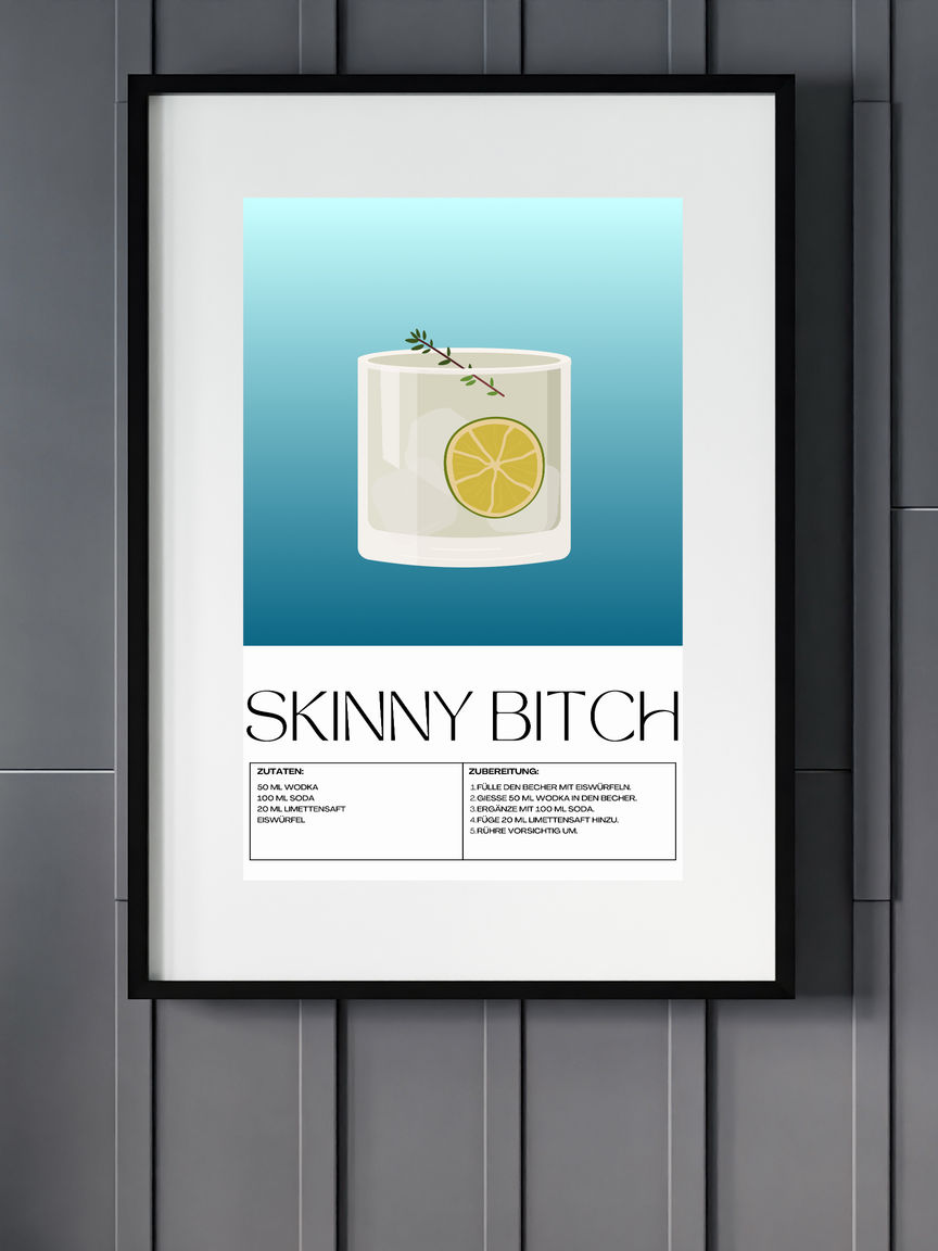 Das Skinny Bitch Poster in Museumsqualität bringt moderne Eleganz in jeden Raum. Mit seiner intensiven Farbwiedergabe und dem dicken, matten Papier wird es schnell zum Highlight Ihrer Wanddekoration.